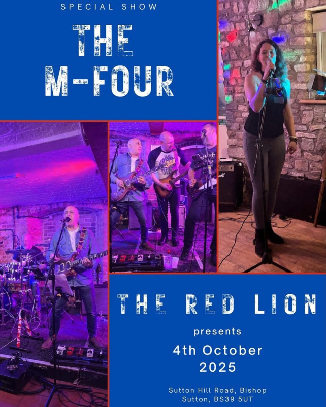 M-Four are back and ready to rock the stage again! Catch the band live at The Red Lion in Bishop Sutton on Saturday, October 04th after 9 PM. Expect all your favorite tracks, raw energy, and maybe even a new surprise or two. This intimate venue fills up fast, so get there early and bring your crew. Whether you're a fan or new to the sound, this is a night you won’t want to miss. Let’s make it loud, let’s make it unforgettable—M-Four style.